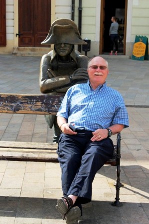 Back in Hlavné Námestie plaza I found Jack, waiting patiently for the rest of us to return, seated on a bench with a statue of Napoleon leaning over the bench.