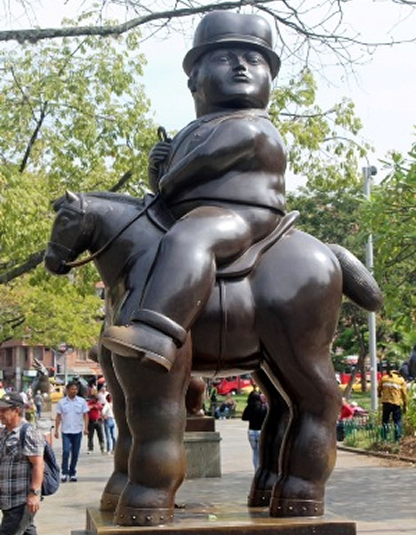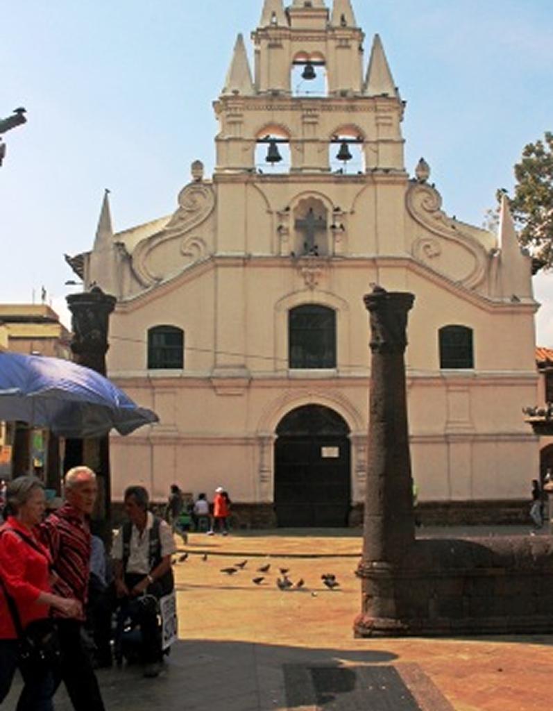 January 19-22 2016 Wow, the whole plaza is full of chubbies! Oh, yes, Medellin (pronounced Made-a-jean) is the birthplace of Fernando Botero. All these sculptures in the Plazoleta de las Esculturas park, AKA Plaza Botero, in front of the art deco Museo de Antioquia, were donated by the artist, just as he did in Bogota for the Museo Botero. The artist certainly has a sense of humour. All these sculptures lend an air of fun and hopefulness to a city with a violent past. Ray and I busied ourselves snapping photos of several of the sculptures, trying to decide which ones were our favourites. We had flown to Medellin, blessed with a climate called “eternal spring”, situated in a narrow valley, surrounded by jagged peaks, from Cartagena the day before. We stayed in a nice small hotel, called In House the Hotel, in the tourist friendly area of El Poblado, where restaurants vied for places with hostels and small hotels. Our Hotel was a 15 to 20 minute walk downhill to the Metro, which conveniently whisked us right to Parque Berrio, just steps from Plaza Botero, museums and the Colonial churches we wanted to visit. After the Botero’s sculptures, our destination was the Museo de Antiquia, named for the district of Antioquia, it housed a collection of pre-Colombian and colonial art with the main emphasis on modern art. Yes, there was a large collection of Fernando Botero’s, but there was more. I especially appreciated the murals on the stairways, the work of Pedro Nel Gómez Agudelo, a contemporary of Diego Rivera. A special exhibit of installations by the new generation of Colombian artists, investigating themes of violence and emigration. tHere were good explanations of the artist’s intent and films to go along with their installation. We were both impressed and spent the rest of the morning in the museum. We emerged from the museum at lunch time to find the streets lined with food and souvenir carts and more people in one place than we had encountered in Colombia so far. It was a colourful, happening place. We had lunch in a really good value vegetarian restaurant, Govinda, the haunt of many Colombian Hare Krishna types and lots of business people who know a good deal when they see one. That set us up to visit several colonial churches in the area. The most attractive for us was the small Ermita de la Veracruz, a colonial church constructed in 1803 on the grounds of the original 1682 church, right next to the Museo de Antiquia. A few blocks farther north was the red Adobe brick Metropolitan Cathedral of Medellin, in front of Bolivar Park, constructed over a 50 year period from 1875 to the 1920s. It was not open when we visited so we just admired the outside and the park. Our last stop was the Basilica de la Candelaria, which dates from 1863. We still preferred the simpler Ermita church.