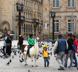 There were benefits to staying in the Candelaria. All the best sites were a short walk away and there was no shortage of restaurants. We visited the Plaza de Bolivar, a huge square in front of the Cathedral and surrounded with important government building. All the tourists, both local and foreign end up at this square, buying corn to feed the pigeons and watching children ride the llamas waiting for customers.