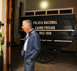 We were approached by a young policeman, who asked us where we from and asked if we would like to tour the National Police Museum. It didn’t sound like our first choice of activites so we refused and continued walking the streets admiring the beautiful, well restored buildings. I was reading the Lonely Planet as we walked and was surprised to read that the Police Museum was more than I had thought. We sought out the young man who had approached us and told him we had changed our mind. He took us to the Museum, housed in the original headquarters of the National Police, where we waited for another guide to show us around the museum. Our guide, Jonathan, explained that all 18 year old boys in Colombia are required to spend one year in the National Police force. Those who are interested, train to be a guide in the museum. Jonathan considered being a guide a lot safer and more interesting than standing guard at a building or street corner. The job also gave him the opportunity to practise his English skills. The tour was interesting. It had examples of old transport vehicles, including a paddy wagon that picked up people found guilty of minor infractions and kept them in the wagon, in full view of the population for one day. Nowadays they would be fined, but public humiliation was the punishment then. There were also displays highlighting the different roles played by the police, including social service. The biggest draw for most visitors was the role played by the police in apprehending and controlling the drug trade, whose most infamous member was Pablo Escobar. How many of you have watched the TV miniseries, now on Netflix, Narcos. We watched it before we left home and are glad it is no longer as violent as it once was.