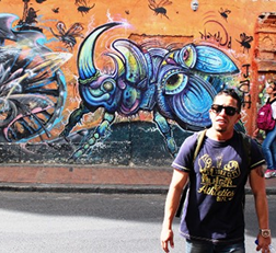 The afternoon after we visited Guadalupe hill, we joined the immensely popular Graffiti walking tour. About 30 tourists followed the very knowledgeable Jay, who was born in Colombia and Raised in New York and Florida. We spent 2 ½ hours walking the streets of Candalaria and into some of the business area admiring the art work covering almost every wall space, both on public and private spaces. The tour was originated by Crisp, the tag name of one of the artists, a few years ago. The graffiti artists and they are artists, like to think they have won the battle to keep on painting without being arrested. About a year or two ago the city invited artists to paint the walls of a new super highway leading to the airport. They had expected just a few artists to show up and were astounded when 400 showed up. I was certainly impressed by the works. Bogota now draws artists from all over the world and is counted one of the 10 best cities to view graffiti art.