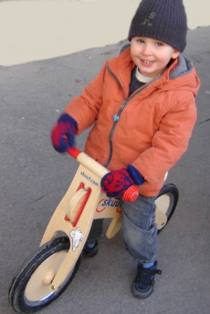Atticus riding his Skuut