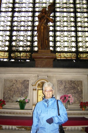 Ray and I did stop in to visit the Church of Saint Sulpice where an organist was practicing for a performance that evening. The acoustics were superb. I stopped to have my photo taken in a side chapel dedicated to Joan of Arc, (Jeanne D’Arc), my namesake.