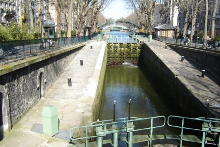 We also visited areas that neither of us had seen before. We wandered along part of the Canal St Martin. Opened in 1825 by Napoleon I to supply Paris with water, it runs from the Seine north for 4.5 km. Tour boats ply the canal, as they do the Seine and pleasure boats travel through the locks. There are even permanently moored barges serving dinner to tourists and offering entertainment from rock bands to light opera. Our walks took us through more parks, including the beautiful Butte Chaumont with high hills and a lake. The Cour St Émilion, with wine storage warehouses converted into upscale shops and restaurants, was a good place to explore when the weather was less than perfect.