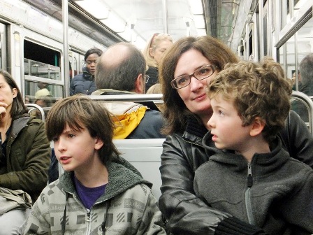 Is there anyone who doesn’t like chocolate? Parisiens like chocolate so much that an big chocolate exhibition is held every year. Roman spent the day with one of his classmates but the rest of us went to see the show. The first sight we had as we entered the large Exhibition center was a 3 meter long chocolate airplane. We followed the throngs of chocolate fanciers past a display of mannequins dressed in chocolate couturier outfits and my favourite, a chocolate Manniken Pis, just like the famous Brussels fountain, except this one was dressed in a chef outfit and peeing chocolate. There were booths from most of the cocoa producing countries and free samples of their chocolate. Ray prefered the free samples of Bailey’s Chocolate liquere. If the free samples weren’t enough, there were lots of chocolate treats for sale. I bought a delicious skewer of chocolate coated fruit. We didn’t need much lunch after that visit.