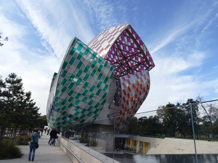Click the photo of Notre Dame above to see an album of photos. Close the window to return to this page Coming to visit our daughter and family in October in Paris is becoming a tradition. We like to schedule our visits to include at least part of our grandsons, Atticus and Roman, two week school break, which is approximately six weeks after the start of the school year. They are old enough now that we can take them on a trip without their parents and the parents, Erica and Andrew, get time to themselves. It is a win-win situation. This year we arrived in Paris early in October for a few days with the whole family before Ray and I took a side trip to Strasbourg, after which we returned to Paris for a weekend and then took the boys with us to Amsterdam and Bruges. As usual, Erica had done some research and was able to suggest several outing in Paris. There was a special exhibit of Mexican Art from 1900-1950, featuring Diego Rivera, Freda Kahlo and contemporaries at the Grand Palais. Mike and Edith Sims, Vancouverites who are good friends of Andrew’s father Herb, played the piano during the memorial service for Andrew’s mother last June in Vancouver. Mike also arranged for Ray and I to stay in his son’s basement apartment for our June visit. We arranged to meet them at the Grand Palais our first Saturday in Paris and spend part of the day with them. Ray and I spent an enjoyable time recognizing several of the paintings we had become familiar with in Mexico and learning more about the depth of talent in Mexico. As we were finishing, Ray, Erica and the boys took advantage of interactive dispays by posing for photos wearing Mexican masks and then getting the boys to pose in life-sized figures of a Mexican girl soccer player, taken from one of Rivera’s paintings. Lunch was to be in a Chinese restaurant Erica and Andrew were familiar with. We took the Metro to Notre Dame Cathedral and walked through the grounds on the way to the restaurant, passing several couples having wedding photos taken, before crossing a bridge to the Saint Germain area where we had a Chinese feast. Roman’s favourite gelato shop was nearby. We wandered down several streets that Mike said were very familiar to him. He had lived in Paris about 50 years ago where he supported himself by playing jazz piano in a club. Mike found the Caveau de la Huchette, still in the same building, so of course we took Mike and Edith’s picture in front of it. The gelato shop was just down the street. I had a small cone but Roman got his price. He had a large cone with 3 flavours artfully arranged like a flower. The next day, Erica, Ray, Atticus, Roman and I took the Metro to Parc de l’Isle Saint Germain, on the River Seine. There banks of the Seine were lined with a variety of house boats, both big and small, and several working barges. The island is a popular park with walking and jogging trails fields to play soccer, and a hill, on top of which is a huge, multi-coloured pillar sculpture, the Tour aux Figures by Jean Dubuffet. On our return to Paris from Strasbourg and the Alsace Wine Route we took the boys to visit the Musée des Arts et Metiers with its collection of scientific instruments and old and new transportation vehicles. Ray and I appreciated the scientific instruments and their history, but the boys preferred the old cars, buses and WWI planes hanging from the ceiling of a deconsecrated church that is now part of the museum. The next day the boys were back at school so Erica, Ray and I rented a coop car and drove to Poissy, just outside Paris to see Le Courbusier Villa Savoye house, built by the Swiss architect and his cousin Pierre Jeanneret, between 1928-1931 using reinforced concrete and very modern flat roofed design. We also went to the nearby town of Saint Germain en Laye where we had lunch, and visited the pretty center of the town. We also visited a museum dedicated to the artist Andre Derain, housed in Derain’s former home. Both the house furnished as it had been when Derain lived there, and gardens were on display. I especially liked the small chapel built and decorated by Derain. We ended our day in Saint Germain by walking on the grounds of the Royal Chateau de Saint Germain en Laye. The chateau was first built by Louis VI around 1122, burned by the Black Prince in 1346, rebuilt by Francis I in 1539, and expanded several times since then. Louis XIV was born there. The gardens, a popular destination for locals on this weekend afternoon, were one of the first in France in Italian style, similar to the gardens at Versailles. One man was flying a drone over the crowd enjoying the view of Paris from the edge on a cliff at one side of the property. Ray and the boys and I took the train to Amsterdam October 24 , where we stayed for four nights before travelling by train again to Bruges where we spent another three nights before returning to Paris. Our last Sunday in Paris, we all went to the Louis Vuitton Foundation Art Gallery on the edge of the Bois de Boulogne. Designed by American Frank Gehry of coloured glass sails, curved to billow out and encompass the galleries underneath. The design was inspired by the glass Grand Palais. Sunday was the opening day of a new exhibit featuring the modern art collection of Russian art dealer Shchukin. It was a capacity crowd forcing us to line up for ½ hour to get in, even though we had timed reserved tickets. The collection was huge, including 20th C French artists and Russian artists inspired by the European masters of modern art. Ray and I spent quite a bit of time on the roof terraces, covered by the colourful glass sails. There were good views of Paris from the top and also the adjoining Bois de Boulogne Park. Touring the Louis Vuitton Gallery made us hungry. The family favourite Sushi restaurant was within walking distance and the boys especially love sushi. The small restaurant is designed with the cooks in the center loading small plates onto a conveyor belt tha