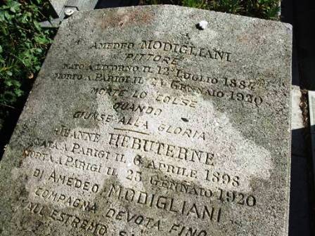 Edit Piaf’s grave was hard to find. A group led by one of the guides offering his services in the cemetery alerted the rest of us who had been fruitlessly searching. Nearby we finally located the grave of Modigliani, the Italian painter. He died of alcohol and drug abuse in abject poverty in Paris at age 35. He left a 22 year old pregnant common law wife, Jeanne Hébuterne, and a 15 month old daughter. Jeanne returned to her parents but was so distraught she jumped from her family’s fifth floor apartment killing herself and her unborn child three days after Mogdiliani’s death. She is buried next to her lover.
