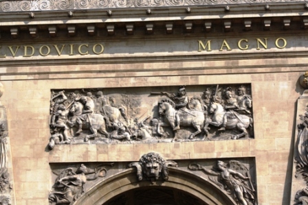 One of the walking tours in Paris Access guide book sounded good. We had been to the Place des Voges, suggested as the start of the walk, but we hadn’t been to the places at the end of the walk. We took the Metro to the Louvre and made our way to the Place des Victoires at the confluence of six streets. An equestrian monument in the center of the square honors King Louis XIV celebrating the Treaties of Nijmegen, concluded in 1678-79. The original statue was destroyed in 1792 during the revolution. In 1828, the restored Bourbon king, Charles X, commissioned the current equestrian statue of Louis XIV, dressed as a Roman emperor.