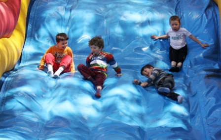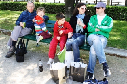 The day was sunny and warm and families thronged the parks and avenues. Buskers, food booths and small funfairs entertained the people. Andrew found a deli where he bought gourmet lunch treats which we shared, sitting on a park bench on a promenade beside the Seine. After lunch the boys had a great time tumbling down one of the large inflatable slides set up next to our picnic spot.